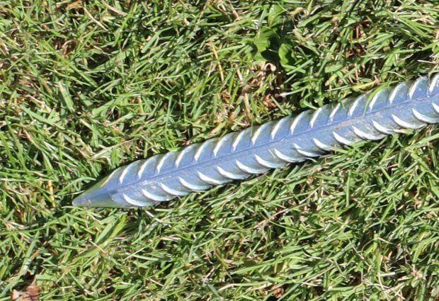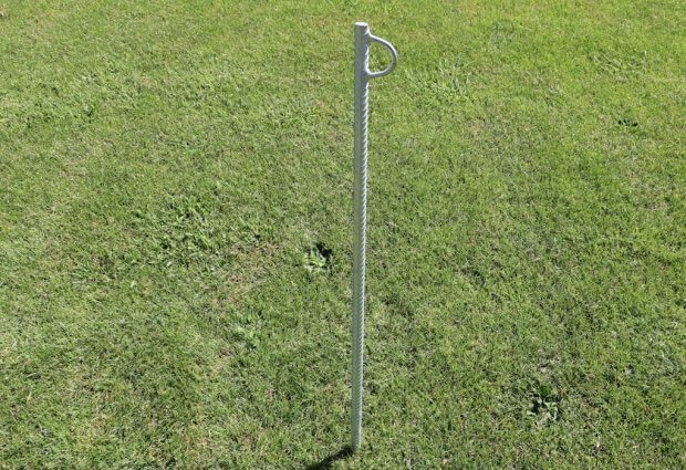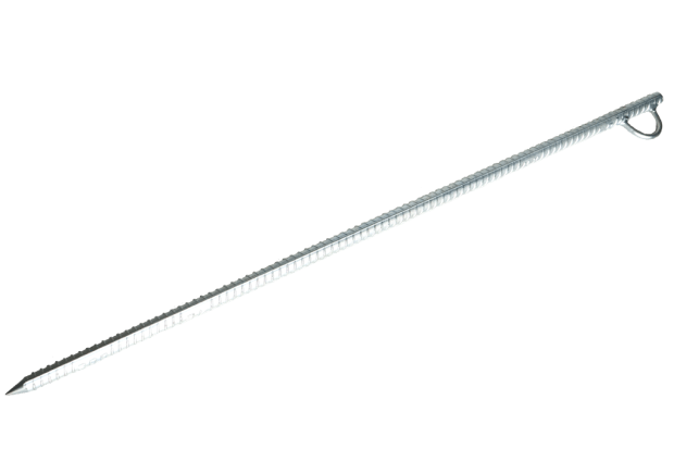 Denne robuste pløk er specielt designet til at installere vores udtrækbare telte. Den måler 100 cm lang og inkluderer en sidering for at lette fastgørelsen af rebskralde.