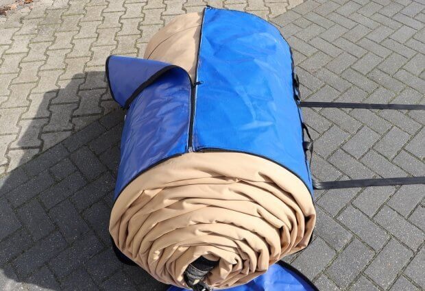 Vores robuste og holdbare bæretaske er specielt designet til intensiv brug. Takket være det intelligente design og robuste materialer beskytter det dit stretchtelt optimalt mod snavs, fugt og skader under transport og opbevaring.