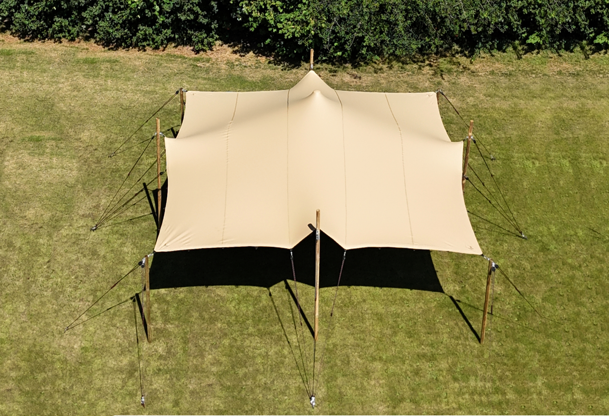 Takket være en innovativ fremstillingsproces med syede sømme er vores stretchtelte fuldstændig vandtætte og usædvanligt holdbare. Dette beskytter dine gæster mod regn, vind og andre elementer, så de kan nyde en uforglemmelig oplevelse under alle forhold. De vandtætte sømme er utrolig stærke og har et ekstra beskyttende lag, der garanterer mange års vandtætning.